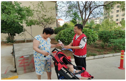 實(shí)踐活動(dòng)最后,為助力文明城市建設(shè),服務(wù)隊(duì)員們走進(jìn)社區(qū)開展了走訪慰問、垃圾清理、向路過老人發(fā)放飲用水等。隊(duì)員們一邊和老人們交流談心,一邊清掃地面。干凈的街角,老人誠(chéng)摯的謝意,讓隊(duì)員們感受到了勞動(dòng)的快樂。