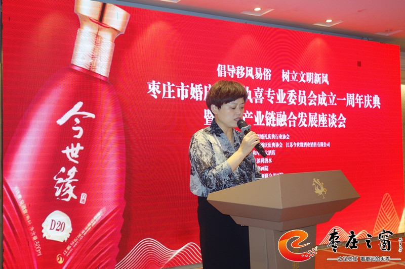 為貫徹落實(shí)上級(jí)部門提出的倡導(dǎo)文明、喜事新辦,移風(fēng)易俗,減少陋習(xí),新事簡(jiǎn)辦的工作方針,建立健全婚禮執(zhí)喜的有序化,更好的構(gòu)建和諧社會(huì),為“工業(yè)強(qiáng)市、產(chǎn)業(yè)興市”做貢獻(xiàn)。7月12日下午,由棗莊市婚慶慶典協(xié)會(huì)、江蘇今世緣酒業(yè)銷售有限公司主辦的棗莊市婚慶慶典協(xié)會(huì)執(zhí)喜專業(yè)委員會(huì)成立一周年慶典暨婚慶產(chǎn)業(yè)鏈融合發(fā)展座談會(huì)在舜和棗莊大酒店舉辦,執(zhí)喜專委會(huì)成員、專委會(huì)顧問(wèn)團(tuán)成員、棗莊婚慶界、餐飲界、商業(yè)界代表60余人參加活動(dòng)。