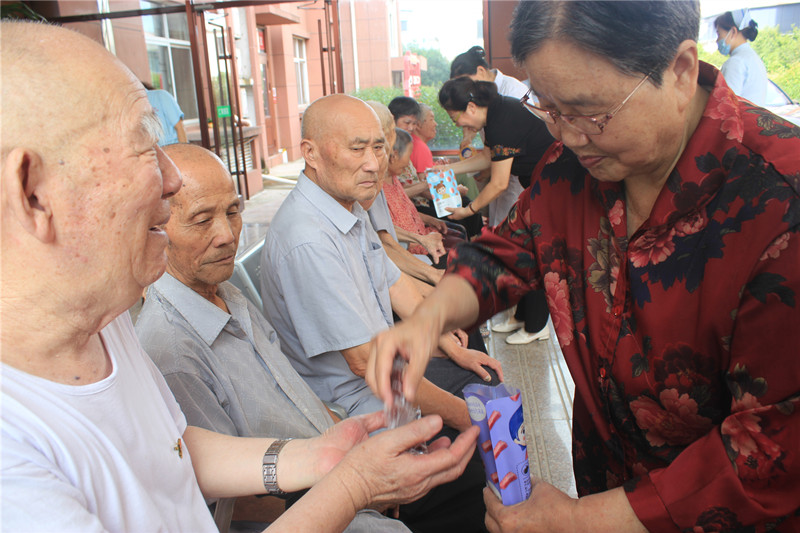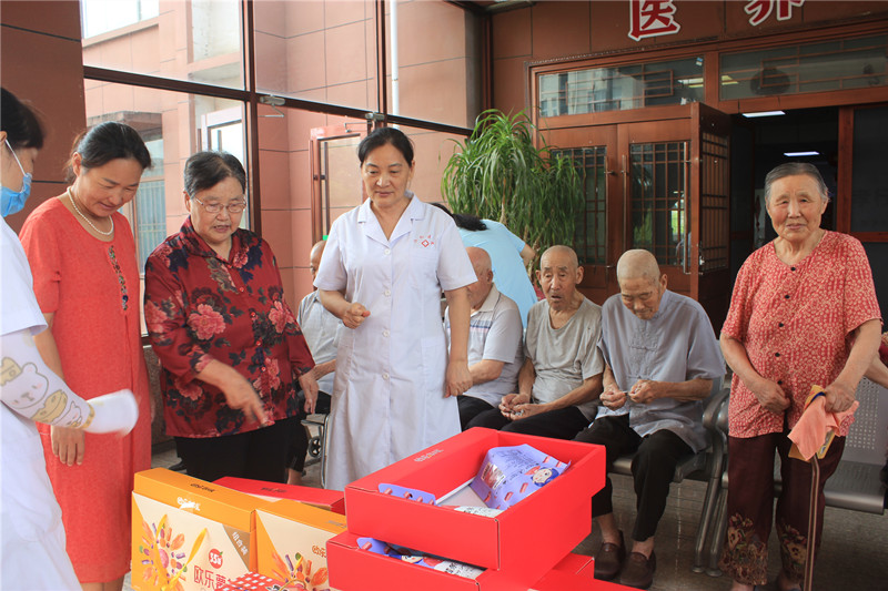 慰問活動中,工作人員為老人們送上速凍水餃、山楂片、藕粉、麥片、玉米糊等禮盒慰問品,工作人員一邊給老人們分發(fā),一邊與他們聊天,輕聲詢問他們的身體、生活情況,了解他們的需求與愿望,囑咐老人們在季節(jié)變化時要注意身體。老人們也敞開心扉,暢所欲言,使得平日里十分安靜的養(yǎng)老院一下子熱鬧了起來。
