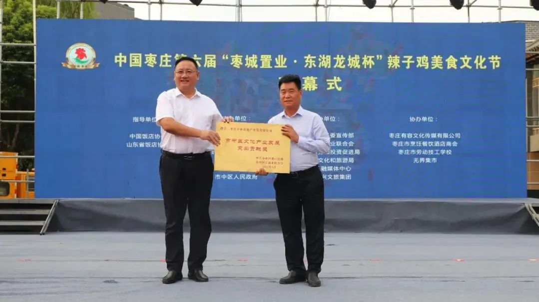 9月25日下午,中國(guó)棗莊第六屆“棗城置業(yè)·東湖龍城杯”辣子雞美食文化節(jié)暨2022棗莊老街啤酒音樂(lè)節(jié)開(kāi)幕式在魯南水城舉行。世界中餐業(yè)聯(lián)合會(huì)副會(huì)長(zhǎng)、江蘇省餐飲行業(yè)協(xié)會(huì)會(huì)長(zhǎng)于學(xué)榮,山東省飯店協(xié)會(huì)榮譽(yù)會(huì)長(zhǎng)李光璧,中國(guó)烹飪協(xié)會(huì)榮譽(yù)副會(huì)長(zhǎng)馮恩援,中國(guó)飯店協(xié)會(huì)副會(huì)長(zhǎng)、百納集團(tuán)董事長(zhǎng)王洪海,山東省精品旅游促進(jìn)會(huì)會(huì)長(zhǎng)、舜和酒店集團(tuán)董事長(zhǎng)任興本,山東省飯店協(xié)會(huì)副會(huì)長(zhǎng)杜海威,市、區(qū)及有關(guān)部門領(lǐng)導(dǎo)韓驚濤、張學(xué)功、趙海濤、岳增波、李從望、賀飛蛟、韓耀輝、侯宗偉、田傳洋、周愛(ài)國(guó)、張兵出席。