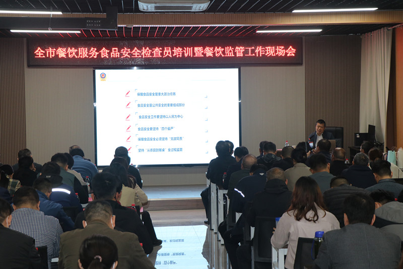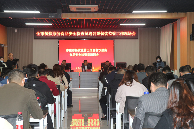 為進一步豐富餐飲服務食品安全檢查員業(yè)務知識,提升全市餐飲環(huán)節(jié)食品安全監(jiān)管水平,棗莊市市場監(jiān)督管理局根據(jù)2023年餐飲監(jiān)管工作計劃,于11月8日,在臺兒莊古城學校召開全市餐飲監(jiān)管工作暨餐飲服務食品安全檢查員培訓會議,市、區(qū)兩級局分管局長、餐飲科全體人員、全市餐飲服務食品安全檢查員參加。會議由市市場監(jiān)管局副局長張衍耀主持;臺兒莊區(qū)委常委、副區(qū)長孫作偉致辭,并介紹建設(shè)“食安臺兒莊”的經(jīng)驗和做法;山東省市場監(jiān)管局餐飲處一級調(diào)研員遲玉聚博士,作《深刻學習領(lǐng)會習近平總書記重要論述精神努力守住食品安全底線》主題報告。