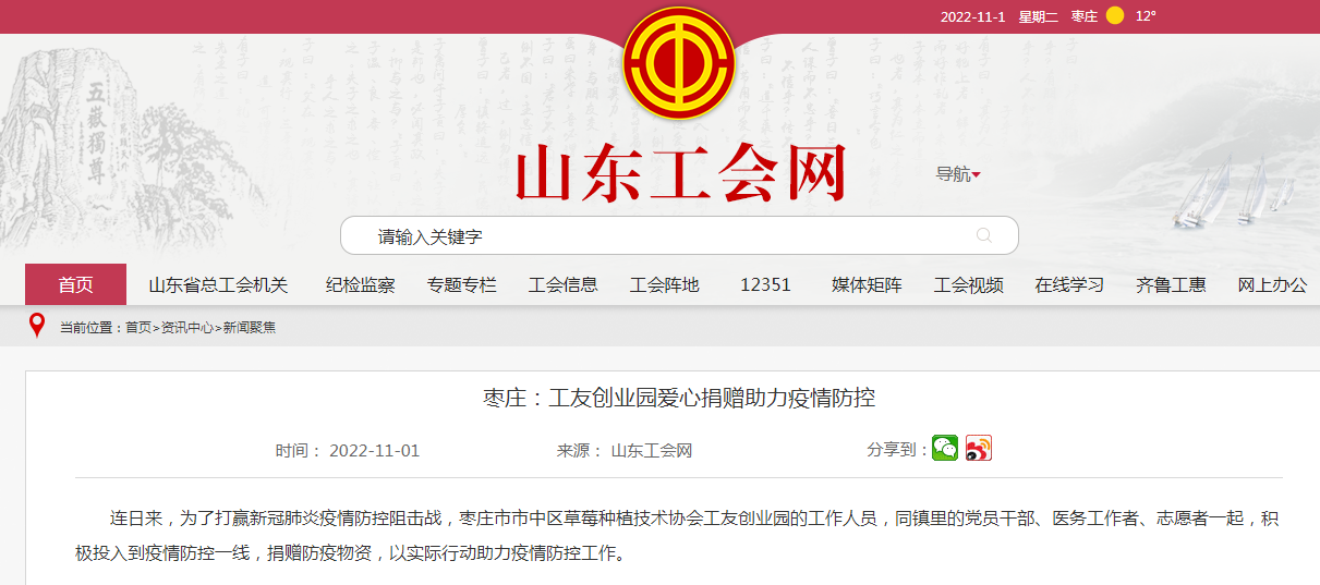 連日來,為了打贏新冠肺炎疫情防控阻擊戰(zhàn),棗莊市市中區(qū)草莓種植技術協會工友創(chuàng)業(yè)園的工作人員,同鎮(zhèn)里的黨員干部、醫(yī)務工作者、志愿者一起,積極投入到疫情防控一線,捐贈防疫物資,以實際行動助力疫情防控工作。